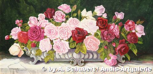 "Krügers Rosen in Silberschale" Repro Frei nach E. Krüger 1998 - 2000 50 x 120 cm Acryl |