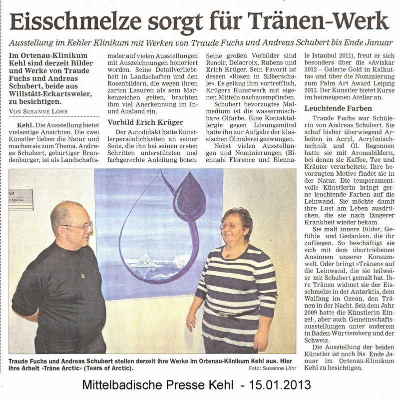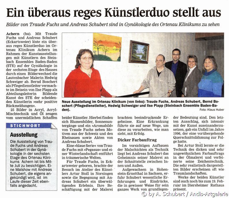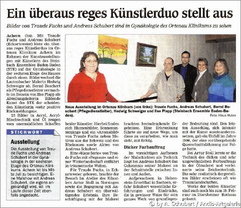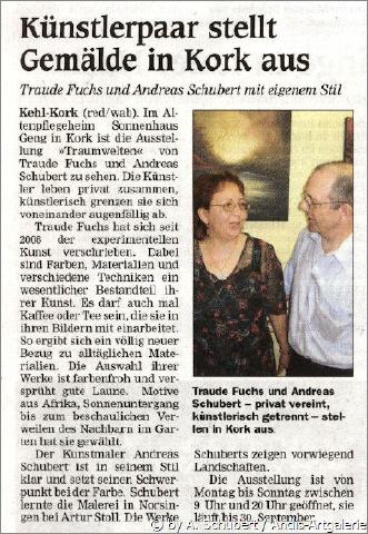 Die Ausstellung "Traumwelten" von Andreas Schubert und Traude Fuchs wurde vom 01.07. bis 30.09.2009 im Altenheim "Sonnenhaus Geng" in Kehl Kork gezeigt.